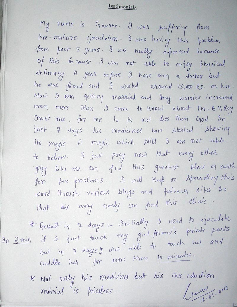 For consultation & treatment (at our centre / or online) click How to Consult Us (Last Updated on: ) Premature Ejaculation (PME) Please watch Dr. B.K.Roy videos on this topic by clicking below youtube links or read detail description given below