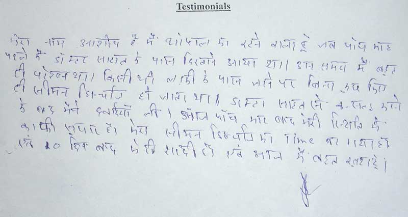 Premature ejaculation (also known as early discharge or quick orgasm, early fall, Shigra-patan) is one of the most frequent, of sexual disorders in the male and is characterized by sudden ejaculation of the semen, just prior to or immediately after vaginal penetration during intercourse (before one wishes or before he could satisfy the female partner). Approximately 10% to 30% people of all age group suffer with quick semen discharge. Premature or 'before time' in other words, is a condition where the man has no voluntary control over his ejaculation. He is quick on the trigger once he starts the coitus. This is a very frustrating disorders of male sexual function in which man feels totally helpless. This leads to bitterness in husbands & wife relationships. For the man, lack of control of his body functioning leaves him feeling unsure of himself. His pleasure is often decreased by the abrupt early discharge. Eventually his preoccupation with trying to postpone ejaculation will hinder his ability enjoy himself to sexual pleasure. When a man is, feeling inadequate, and ejaculating fast, the woman will probably be left unsatisfied. Her frustration will only increase the negative pattern. This is an easily treatable condition. Causes of Premature Ejaculation: